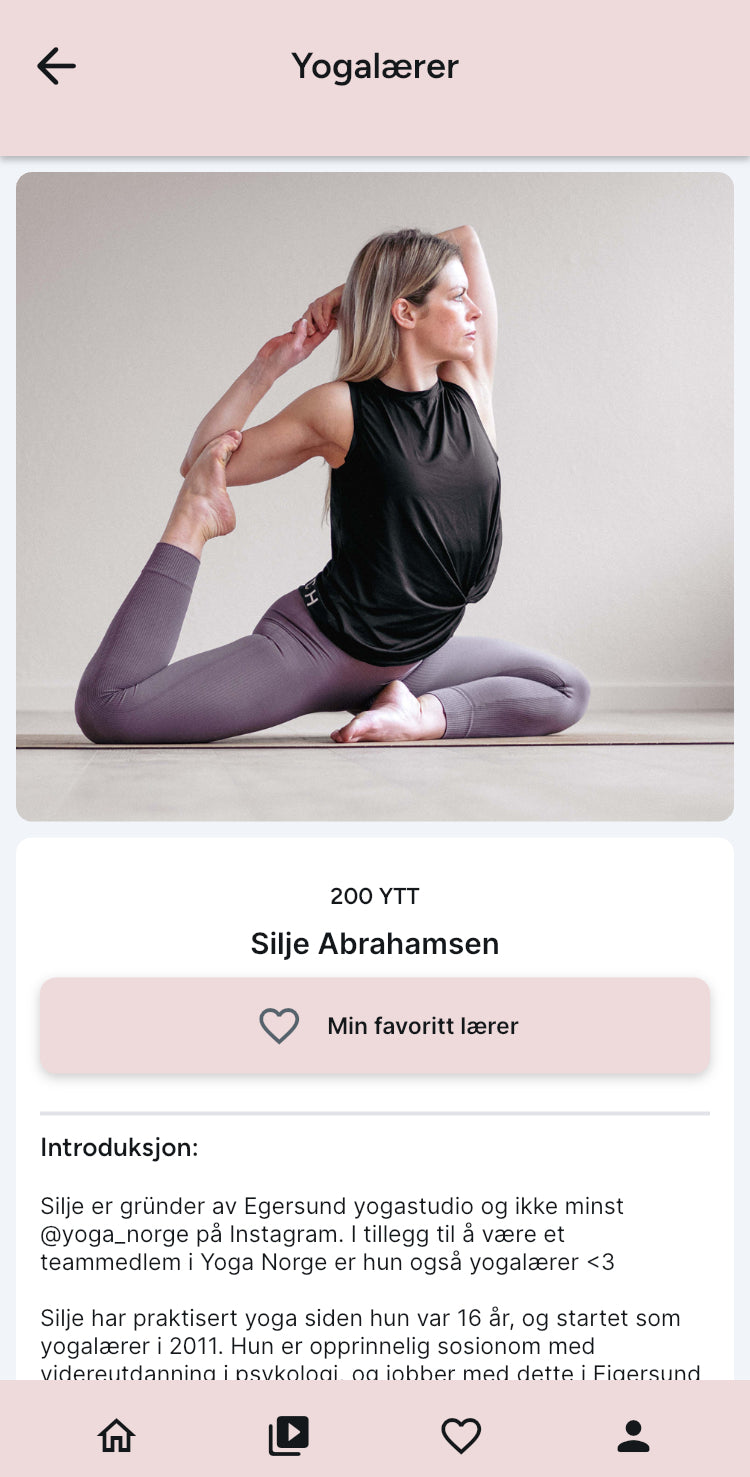 En av hovedgrunnene til at vi valgte å utvikle vår egen app, er ønsket om å synliggjøre og fremheve yogalærerne våre. Alle som underviser via Yoga Norge får sin egen profilside i appen, hvor alle publiserte yogatimer blir koblet til den aktuelle læreren.
